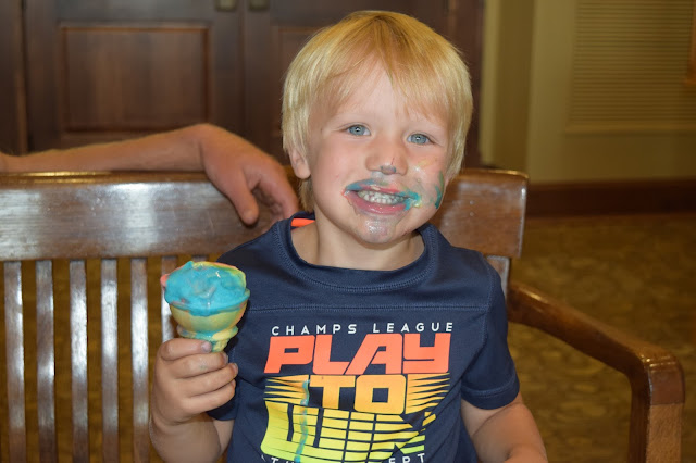 On the way there, we stopped at a new hotel with WATERSLIDES. Ellie also went "swimming"for the first time.